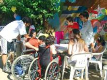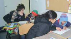 IC students enthusiastically tutoring orphans in diffrent school subjects.